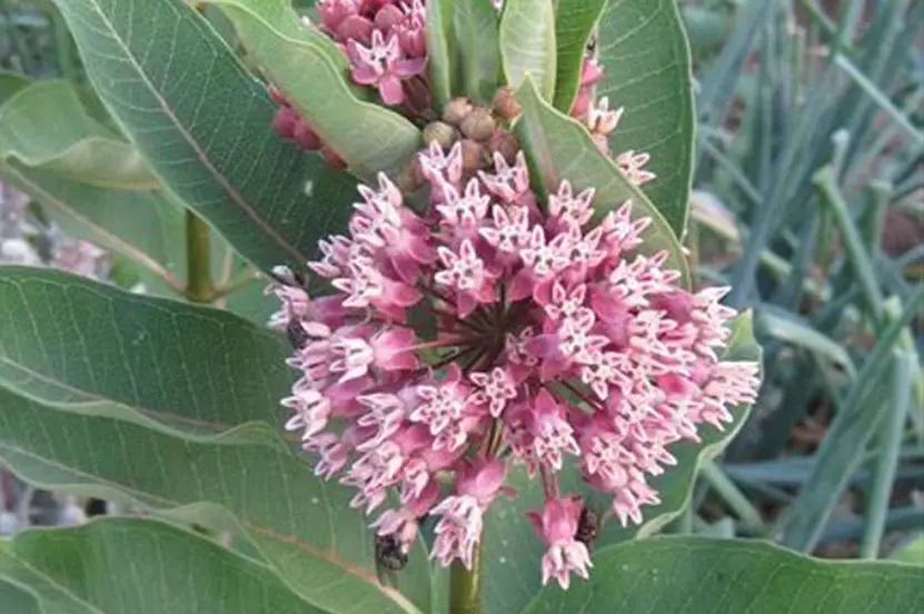 In den Monaten Juli und August verwandelt die attraktive Pflanze ganze Flusslandschaften in ein rosafarbenes Blütenmeer. Der Tiefwurzler der im serbischen auch Divlji duhan genannt wird,  stammt aus Nordamerika und wurde im 17. Jahrhundert als Futterquelle für Bienen und zur Uferbefestigung entlang von Flüssen gepflanzt. Die Seidenpflanze vermehrt sich stark durch Rhizome und weitfliegende Samen und bildet im Grenzgebiet zwischen Ungarn und Serbien große Bestände. Allerdings bietet sie Insekten keinen Pollen, was bei diesen zu Ernährungsproblemen führen kann. Honigbienen stillen ihren Pollenbedarf dann häufig an der Königskerze, lat. Verbascum ssp., die in dieser Region ebenfalls häufig vorkommt. Und noch einen Nachteil bietet diese reichlich Nektar spendende Pflanze für Bestäubungsinsekten. In trockenen Jahren sondert die Blüte eine ölartige Substanz ab. Die Bienen bleiben daran kleben und  können die Blüten nicht mehr verlassen. Viele Imker meiden aus diesem Grund die Seidenpflanze. ↓