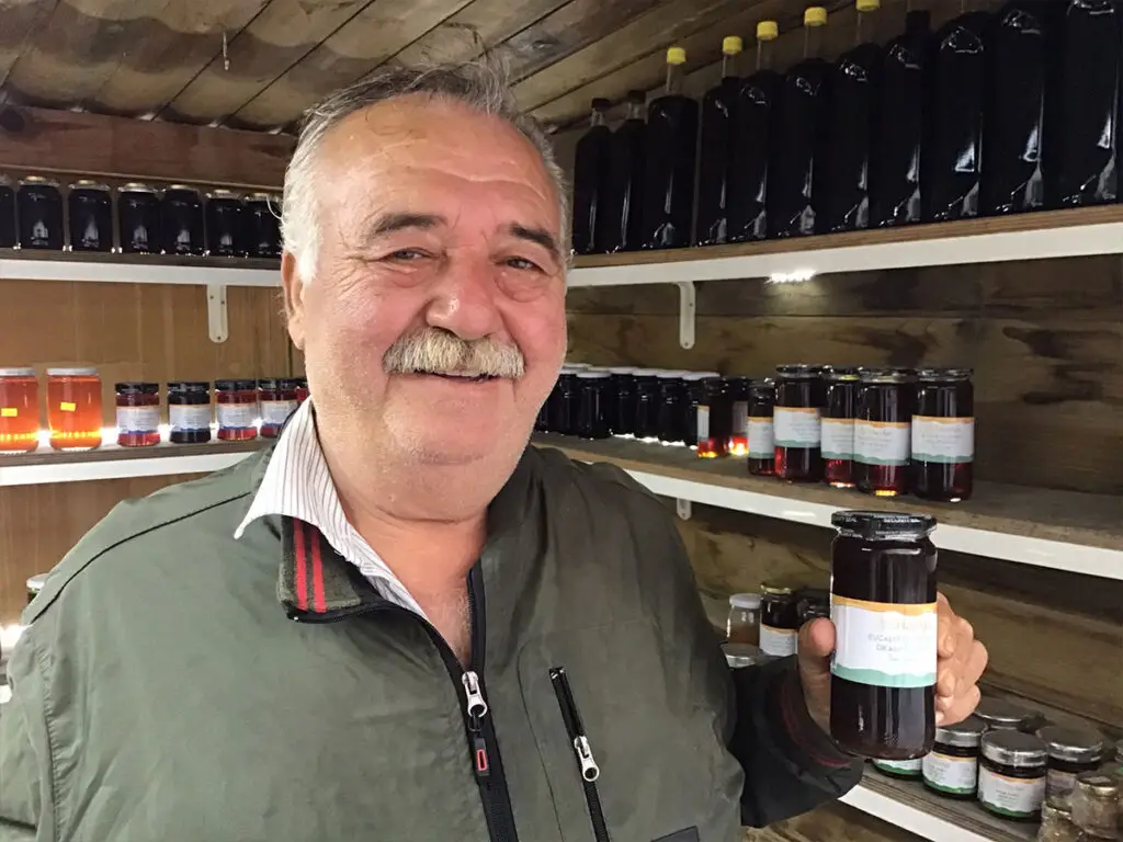 Unsere Suche nach gutem Pinienhonig gestaltet sich nicht einfach. Überall am Straßenrand wird er an kleinen Ständen unter der Bezeichnung „Çam bali“ zum Verkauf angeboten. Unser Gewährsmann für den guten Honigkauf ist der 57 Jahre alte Imker und Gastwirt Şenol Şahin. Für das Abendessen in seinem Restaurant Şahin in Bayir hat er Fisch besorgt, was außerhalb der Saison nicht ganz einfach ist. „Vater und Großvater waren bereits Imker, mein Sohn übernimmt vielleicht einmal den Betrieb“, erzählt Şenol stolz in einem Mix aus Deutsch und Englisch, während er das Abendessen serviert. Seine Gäste hätten es ihm beigebracht. Mit der diesjährigen Ernte ist er zufrieden. Vom Pinienhonig gab es 25 kg pro Bienenvolk, von anderen Sorten weniger. Pinienhonig ist hier in den Bergen die wichtigste Honigsorte. An der Küste gibt es viel Thymian-, Eukalyptus- und Johannisbrotbaumhonig. Rege Wandertätigkeit mit den 600 Bienenvölkern bis weit ins anatolische Hochland hinein, erweitert das Sortenspektrum der Imkerfamilie Şahin um Fenchel-, Astralagus- und den besonders begehrten Schwarzkümmmelhonig.